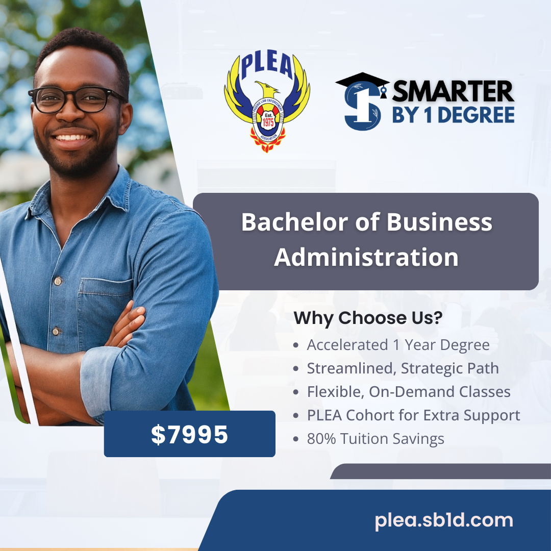 You’ve dedicated your life to protecting others—now it’s time to invest in yourself. With Smarter by 1 Degree, PLEA members and their families can earn a flexible, affordable bachelor’s degree while continuing to serve their communities.